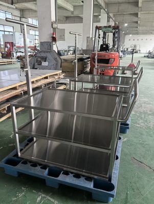 Bu paslanmaz çelik nakliye arabası hastaneler, laboratuvarlar, temiz odalar ve diğer steril ortamlar için tasarlanmıştır.hijyen ve yapısal istikrarKontrol edilen alanlarda enstrüman, ekipman veya tıbbi malzemeler taşımak için idealdir.